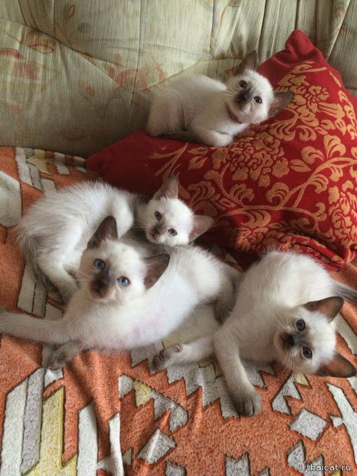В помете 4 котенка (2 девочки окраса сил-пойнт, 1 мальчик окраса шоколад-пойнт, 1 мальчик окраса сил-пойнт). Котята актированы в клубе "Фаворит Кэт"
