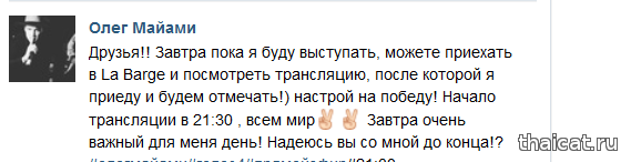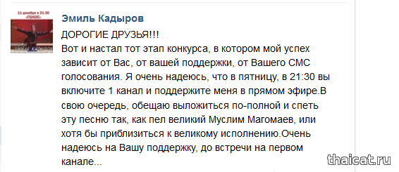У себя на страничке не агитирует, не просит голосовать. http://vk.com/id219963928
