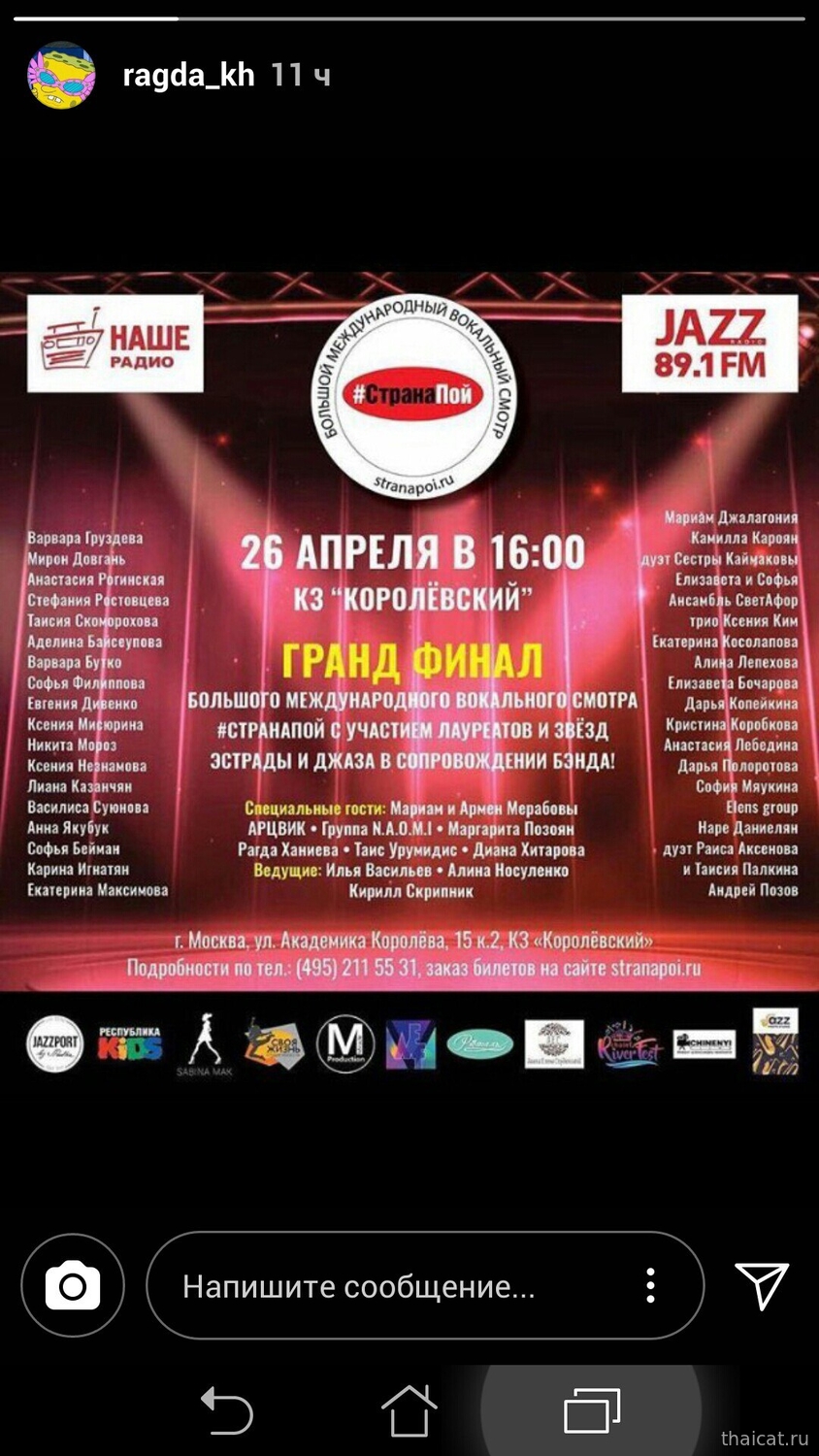 ladislav_bubnarСпасибо всем кто вчера посетил концерт Группы Пелагея и участников шоу «Голос 6»в КЗЦ Миллениум в городе Ярославль! Спасибо за ваши овации и улыбки! Видеть ваши счастливые лица - это лучшая награда для нас!