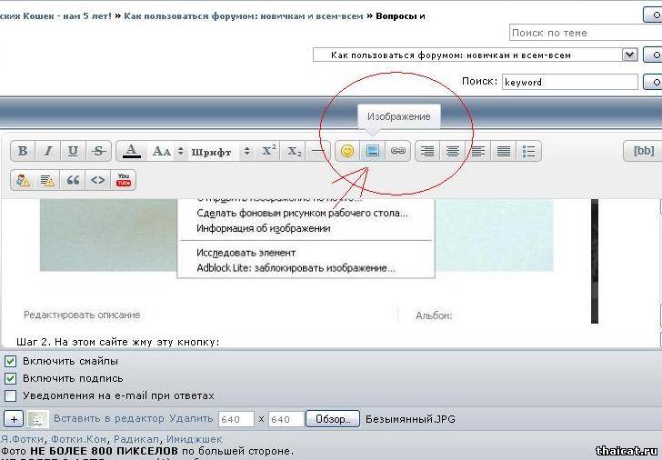 17. У меня не получается вставить фото. Все вопросы по фотографиям в этой теме http://www.thaicat.ru/forum/37-515-1