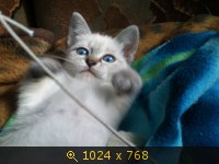 Sim-Siam, спасибо-спасибо! Сегодня еще наделаю фоточек. Кисонька у нас ну очень воспитанная. Туалетик свой распознала сразу, я только один раз показала ей где он стоит. Когда бежит "погреметь деревяшками" (так называет муж грохот древесного наполнителя), оповещает нас радостным мяуканьем. Купили новую когтедралку, угловую, старая-драная ей не понравилась. Теперь они со взрослой киской Марысей "когтят" наперегонки. Мне кажется, Софи хотелось бы, чтобы когтедралка заканчивалась где-нибудь на потолке, ведь только разбежится, а она уже кончилась! Сегодня начнем сооружать игровой комплекс с двумя домиками для обеих кисок, все запчасти уже купили. Обязательно покажу что получилось. P.S.Sim-Siam а наши фотографии у вас разве не открываются по клику в новом окне в увеличенном виде? Я вроде все правильно сделала, у меня работает. Нужно нажать на превьюшку и она увеличится. Моя Софочка