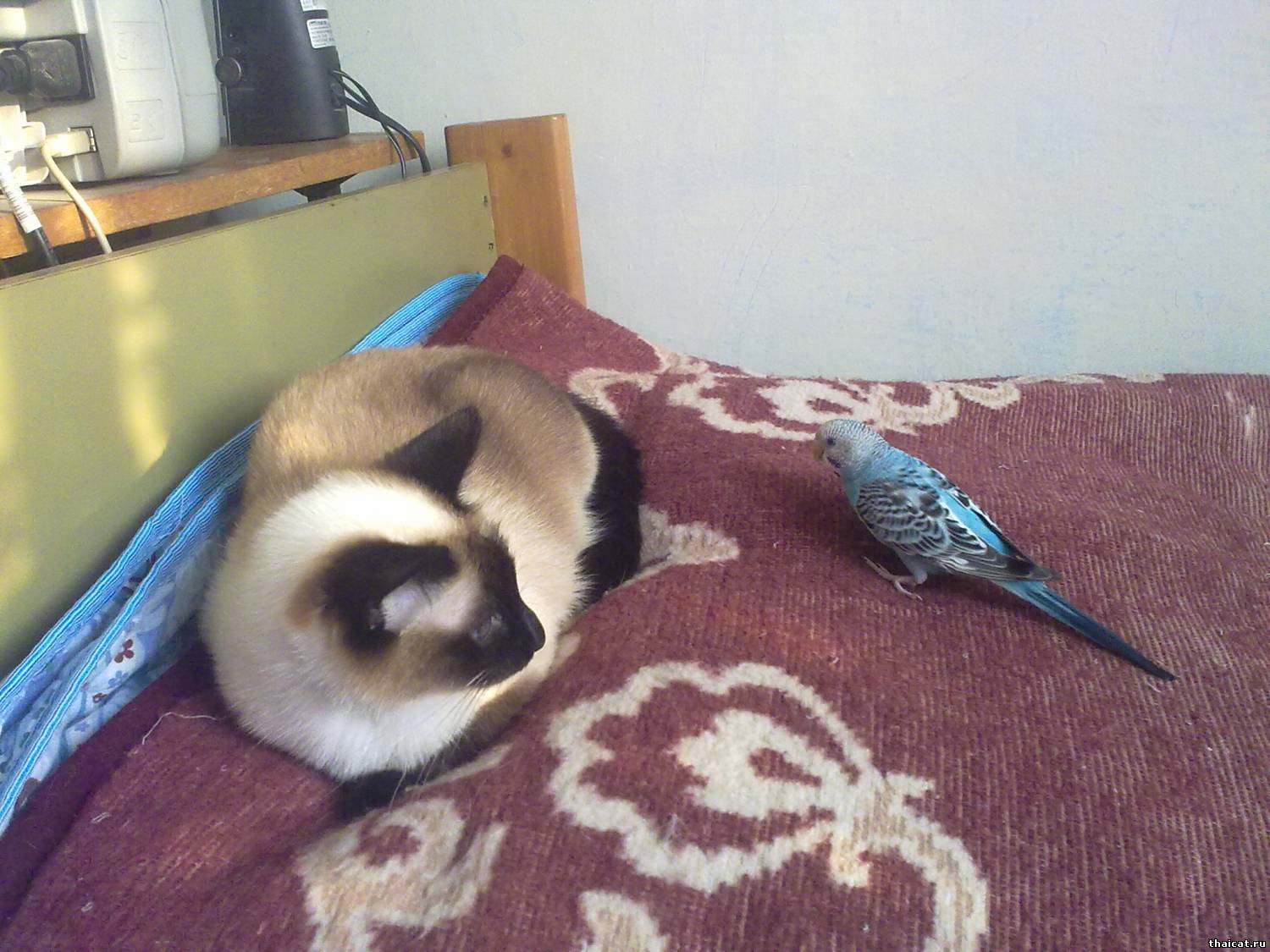 Цитата (Svetlana-М) А как подружили их,интересно? А то у моего сына тоже попугай и кот, так что-то никак кот понять не хочет,что это не предмет охоты)) Ну я кошкам говорила, что это друг, сестра, попутно брызгая кошек водой, когда они пытались охотиться... Тайские кошки же умные, они быстро сообразили, что птичку нельзя трогать в моем присутствии. А попугая я выпускаю погулять, только когда сама дома.. Так эта маленькая паразитка специально пристает к кошкам, садится на них, щиплет их за уши. Ася только жалобно мяукает, мол, сгоните с меня эту мелочь, Лева лениво отмахивается от птицы, только к Арише Юська не пристает.