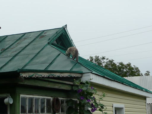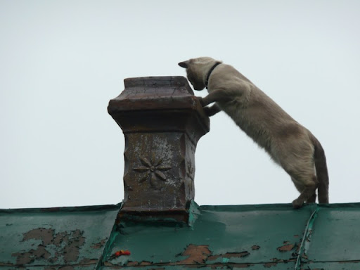 Януш на крыше, мир на земле В итоге пришлось спасать, потому что он уже пытался в трубу залезть...