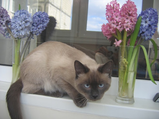 Ага,в гиацинтах-весь такой серьёзный и важный,а на доске характерец мамин проглядывает башибузучий! Ох,даже не верится,что он когда-то вот тут на диване у нас рождался трудно-вон какой вымахал!