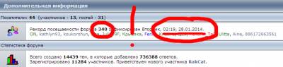 Не прошло и 2х месяцев, как у нас новый рекорд посещаемости онлайн! Уже 340 человек одновременно собрались на нашем сайте (правда, почему-то в 2ч ночи)! Круто!