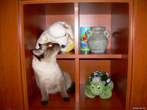 Главная » Фотоальбом » Тайские кошки (thai cats) » Сил-пойнт » Щас я вам покажу, кто в доме царь зверей!