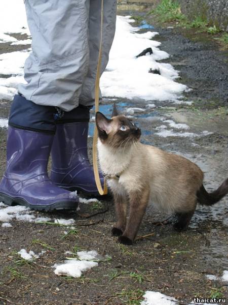 Главная » Фотоальбом » Тайские кошки (thai cats) » Сил-пойнт » Первая прогулка. Кошка выгуливает хозяина
