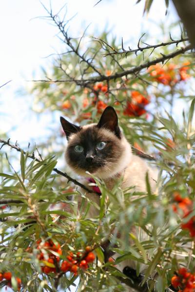 Очень красиво! Потрясающе! Как она умудрилась на облепиху залесть, она ведь колучая!