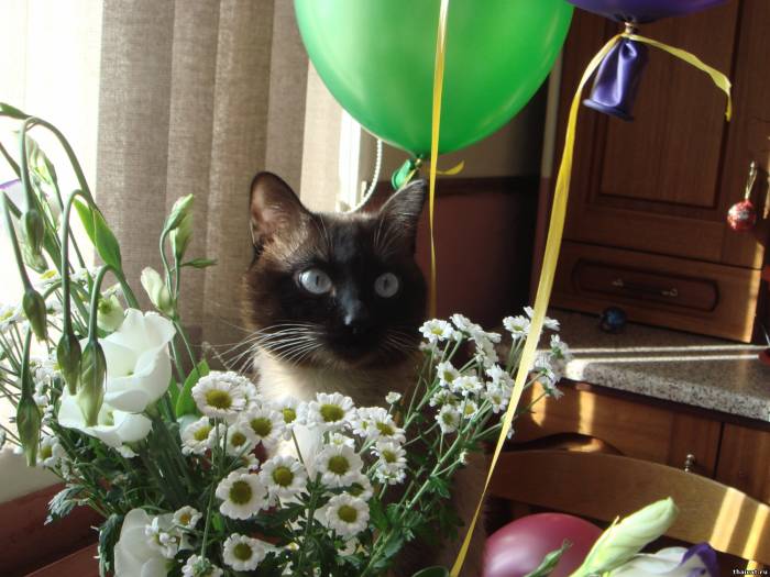 Главная » Фотоальбом » Смешное фото с тайскими кошками » Наши тайские кошки » люблю праздники!!!