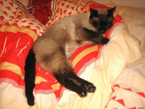 Главная » Фотоальбом » Тайские кошки (thai cats) » Сил-пойнт » Сладкие сны на хозяйской постели)