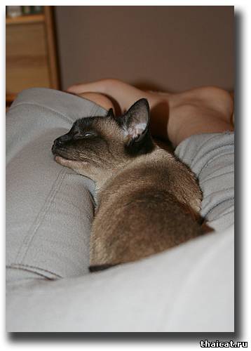 Истинный Тайчатник может часами стоять на коленях любуясь спящей на коврике кошкой.