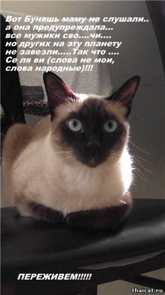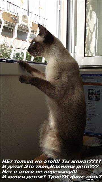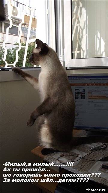 Автор слов и фото mesonya, герои - тайские кошки Тина и Бун Ми (Тель-Авив, Израиль) Рекомендует для вас Chuchi Клуб Тайских КошекОДНАЖДЫ...........Вижу Буняшу у окна...и слышу следующий диалог....