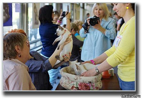 Никогда не трогайте чужих кошек на выставке! Опять же, если Вам надо принести в ринг кошку отсутствующего владельца, обработайте руки до и после контакта с чужим животным.