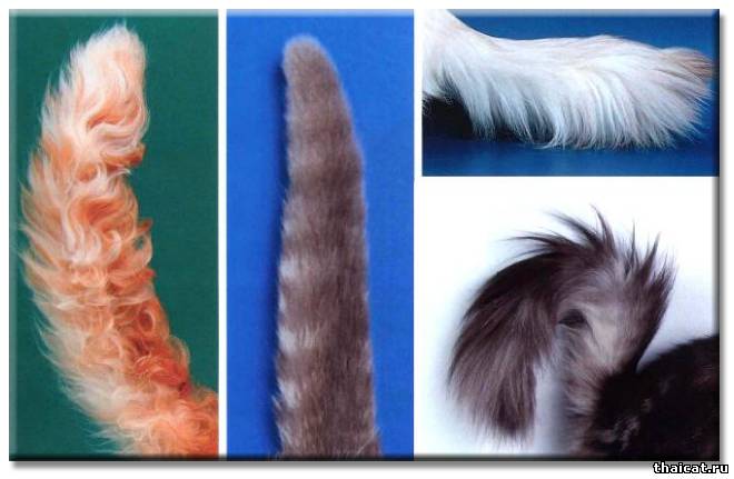 В стандартах пород кошек описание хвоста занимает не одну строку, и на выставках у экспертов к нему повышенное внимание. Чуть длиннее, чуть короче, чуть толще у основания, чуть тоньше — и баллы снижаются. А если непредусмотренный стандартом «крючок» или «узел» — совсем плохо дело. Встречаются деформированные концевые позвонки, на которые иногда будто «нарастает» предыдущий, часто сдвигая его в сторону. Такую деформацию называют «некорректным окончанием хвоста». Незначительная, внешне не видная деформация у самого кончика лишает кошку не только судейской оценки. Такой порок перечеркнет все достоинства кошки, и животное дисквалифицируют и вынесут приговор: «К племенному разведению не пригоден». Сурово, но справедливо. К несчастью, хвостовые дефекты передаются по наследству, поэтому огорченным владельцам советуют кастрировать (стерилизовать) таких животных.