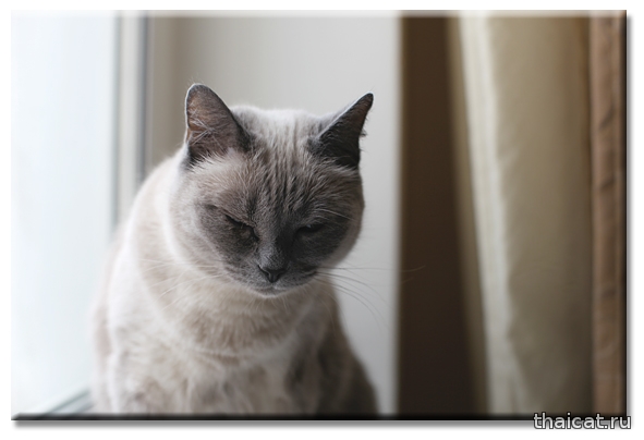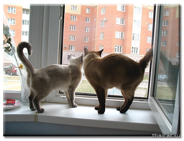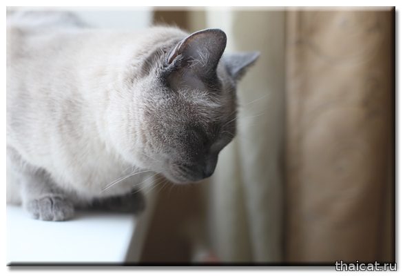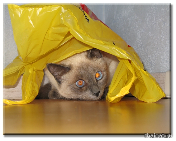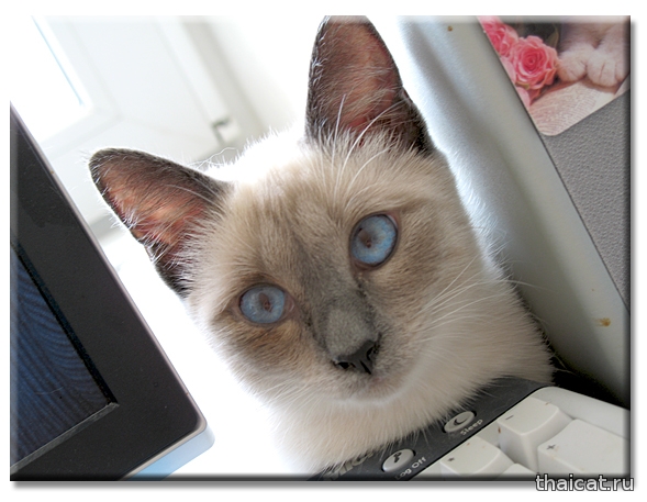 Когда мой будущий муж пригласил меня жить вместе, я поставила ему одно условие – у нас будет сиамская кошка!!! Ну, я ж тогда еще не знала ничего о тайских… Муж посмотрел в Интернете на сиамских котят (именно сиамских, а не старосиамских), повздыхал и согласился. Когда мы стали вместе жить и искать «настоящего», «правильного» сиамского котенка, тогда-то и выяснилось, что мне нужен тааааайский котенок, и мужу такие очень даже нравятся! К моему огромному удивлению, найти тайского котенка в 2005 году в Обнинске было огромной проблемой (а у нас на Урале каждый пятый кот был пойнтовой расцветки, в том числе и тебби, и без белой пятнистости). Я звонила по всем объявлениям, и не было ничего подходящего! Или не было окраса сил-пойнт, или было очень дорого – 30тыс руб (это в 2005 году!). Искала я через объявления в газетах, в интернете. Тогда-то еще и питомники тайских кошек были представлены слабо в Интернете. Сейчас-то я знаю, что они и тогда существовали, и заводчиков на самом-то деле было немало, но как-то вот – не везло!!!