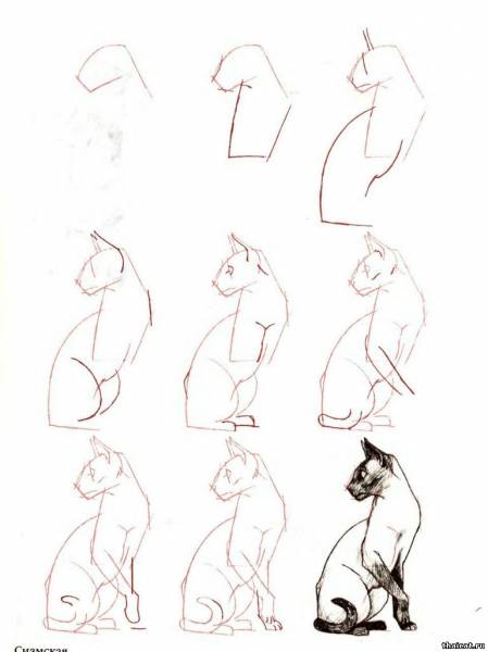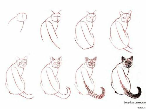 Как нарисовать тайскую и сиамскую кошку