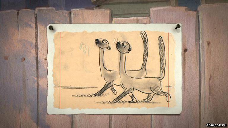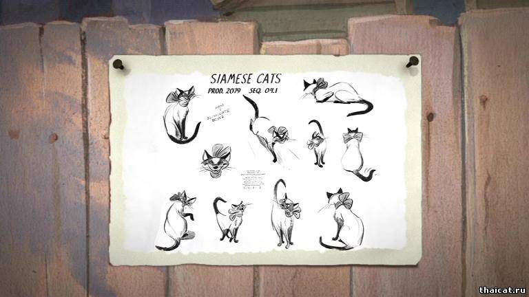 В этой статье мы хотим вам показать как создавались герои сиамских котов. Рисунки, сделанные ДО создания мультфильма, в целях поиска внешнего вида персонажа, выявления его главных характеристик, называются концепт-арт.
