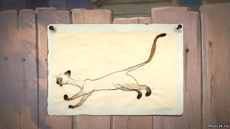 А мультик назывался по кличке белого щенка "Вольт", там его преследовали две кошки, одна тощая, типа черной пантеры, а второй жирненький пушистый котяра, скорее невский маскарадный, расцветки нашинской.