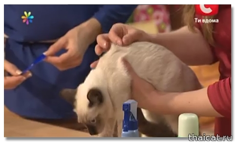 - Поскольку они существа, любящие себя полизать, облизать, то единственное место, куда они не достают, это чисто анатомическая особенность – это область холки, между лопаток. Вот эту зону вы аккуратненько разделяете и уже на кожицу выдавливаете ампулку.