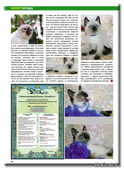 Когда я отдаю котенка новому владельцу, я всегда говорю, что тайцы это три в одном. В первую очередь — Человек, во вторую Собака и только в третью Кошка.