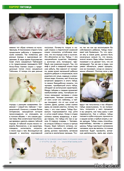 Между тайцами и людьми возникает необъяснимая связь, тончайшие ниточки связывают человека с этими животными. Человек понимает, что от него хочет его любимец, и тайцы понимают, что от них хочет их хозяин. Даже, думаю, слово хозяин здесь не совсем уместно, потому что таец — это член семьи. Тайцы буквально подстраиваются под ритм и устои новой семьи.