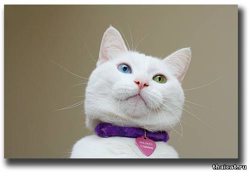 Иногда встречаются белые кошки с разноцветными глазами, см. ниже.