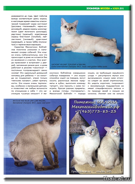 NICOLAS RED BLUE LINX LINE MALINA, Iternational Champion WCF, окрас seal-point (внизу слева)