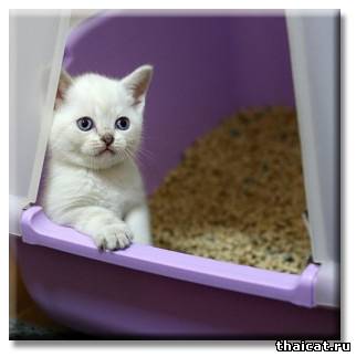 Маленькие котята практически не пахнут. Как только они переходят на взрослую пищу, меняется запах выделений, кошка перестаёт убирать за котятами. Гнездо начинает пахнуть. Пора менять квартиру, решает дикая кошка-мама и переносит котят на новое чистое место. У домашних кошек такой возможности нет. Как только котята начинают вылезать из гнезда, умная мама и внимательная хозяйка начинают приучать котят пользоваться туалетом. В детский лоток, в который взрослая кошка обычно не ходит, привыкнув к собственному, кладут кусочек бумаги с капелькой содержимого маминого туалета. Первая побудительная реакция у проснувшегося котёнка – опорожнить мочевой пузырь и кишечник перед исследовательскими экспедициями. Он выбирается со спального места на свободное от собратьев и тут-то его и подхватывает хозяйская рука, высаживает на горшочек, и нежно массирует промежность, подражая движениям языка мамаши. Многие кошки-мамы увлекают с собой во взрослый лоток котят ласковым поощряющим помуркиванием и личным примером демонстрирует правильные действия в кошачьем туалете, сначала оправляясь в присутствии котёнка, а потом зарывая наполнителем или кусочками бумаги экскременты. Кошки любят демонстрировать правильное поведение за компанию с владельцами. Те, у кого кошачьи лотки стоят в туалетных комнатах, хорошо это знают. Быстро обучаются этому и котята. Но если котят раздавать из помёта рано, в 4-5 недель от роду, до формирования у них правильного поведения, то начинаются проблемы. В этом возрасте за котятами ещё ухаживает мама и они оправляются прямо под её теплым боком, в своей постельке. Маленького плачущего котёнка, только что отобранного от мамы, так соблазнительно взять к себе под бочок в постель. Не стоит удивляться, если он по привычке начнёт писать вам под бок, ожидая, что вы, как приёмная мама, всё подлижете и уберёте. Наказывать его ещё не за что. Только напугаете и испортите отношения на всю жизнь. Не жалуйтесь потом, что вас не предупреждали. Способ борьбы прост. Либо просыпайтесь раньше котёнка и высаживайте его на горшок до того, как он написает вам в кровать, либо никогда не берите его себе в постель. Приготовьте для котёнка на первое время на ночь большую коробку, куда поставьте его тёплый домик или лежачок и туалетик.