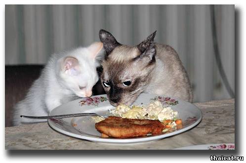 А сделать наших любимцев привередливыми и капризными очень легко. Если им часто достаются лакомые кусочки со стола, то вскоре вы сами не заметите, как кошка начнет демонстративно отказываться от приготовленной для нее пищи. Некоторые «хорошо воспитанные» кошки при несоблюдении необходимого им рациона бывают очень предприимчивы. Кошачья лапа хватает лакомый кусочек с обеденного стола в мгновение ока!