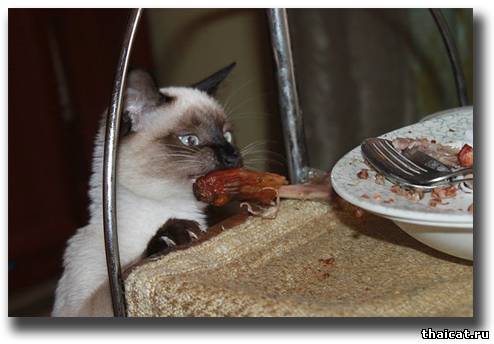 Жареное и копченое кошкам нельзя. Отдайте предпочтение вареному мясу.