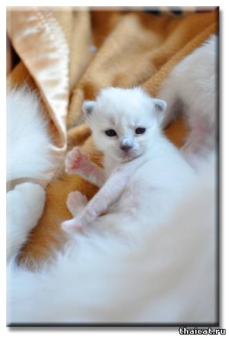 Рекомендует Фырочка, Клуб Тайских Кошек В среднем новорожденный котенок весит 110-125 г. Котята должны постоянно прибавлять в весе и удвоить его к 7-9-му дню. В 5 недель котенок весит в среднем 450 г, а в 10 - около 900 г. Котят (с первого дня жизни) взвешивают ежедневно первые две недели, а затем, до 4 недель, — раз в три дня. Постоянное прибавление в весе — наилучший показатель нормального развития котенка. Если он не прибавляет в весе, необходимо тщательное обследование.