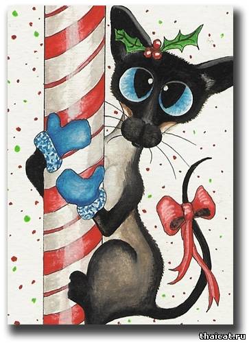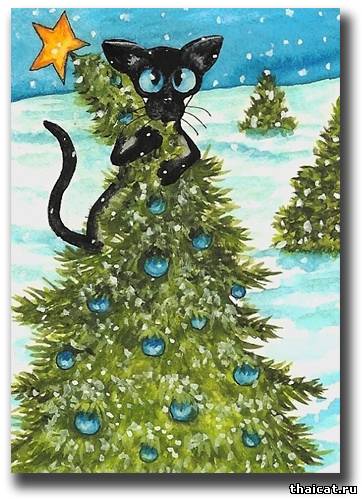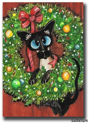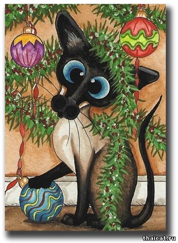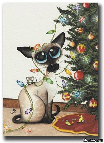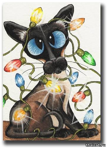 Бедный Сиамский Котик совсем запутался в гирлянде! Непростое это дело, знаете ли, сиамским котикам гирлянды вешать на зеленые елки!