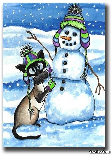 Странное чудо-юдо звали Снеговичок. Снеговичок и Сиамский Котик быстро подружились. Снеговичок был очень добрый и веселый!