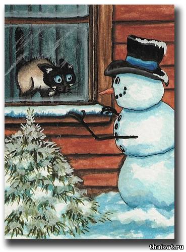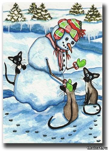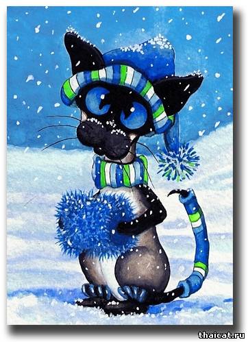 "Рождество? - подумал Сиамский Котик. - А что это?". И снежинка упала прямо на его черный носик.