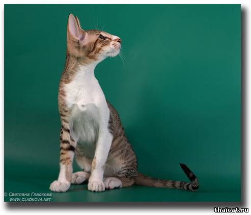 Ориентальная порода была создана и "оформлена" позднее сиамской, но очень быстро стала популярной и любимой. От сиамов ориенталы отличаются только одним геном "С" — доминантным, который окрашивает все тело кошки в различные окрасы. (Так, ориентал черного окраса "эбони" отличается от сиама сил-пойнта только геном "С" — у ориентала и "CS" — у сиама. Однако если у сиамов глаза голубые, то ориенталам стандарт предписывает зеленый цвет глаз. Во всем остальном эти две породы совершенно одинаковы). У современных ориенталов большое разнообразие окрасов — черный "эбони", шоколадный "гавана", голубой, лиловый, красный, разнообразные черепахи, а последняя мода — восточные красавцы рисунка табби — полосатые, крапчатые и мраморные. Особенно нарядно выглядят такие рисунки на серебристом фоне (серебристые табби).