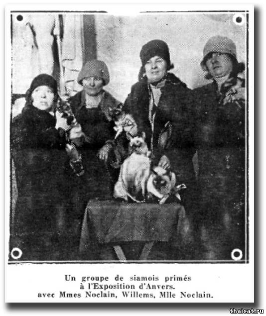 Это фото было опубликовано в бельгийском кошачьем журнале «Бельгийская Кошка Ревю» («Revue Feline Belge») в 1928-1939 годах. На фото изображена группа призеров с сиамскими кошками на Всемирной Выставке в Антверпене.