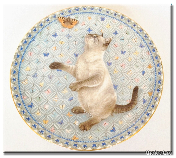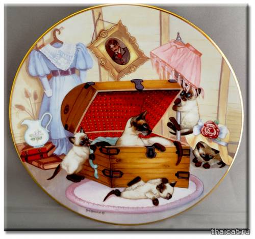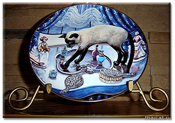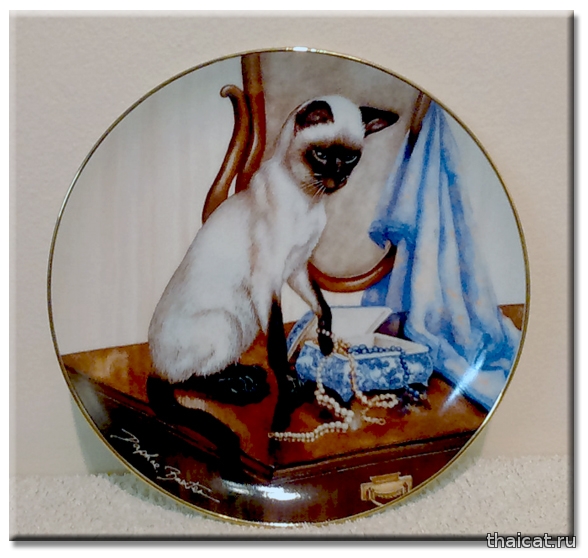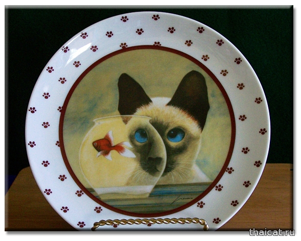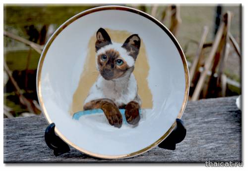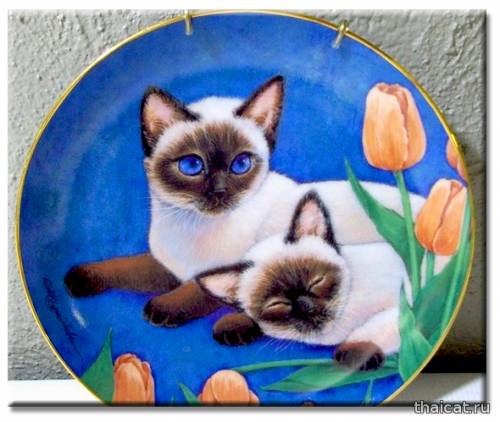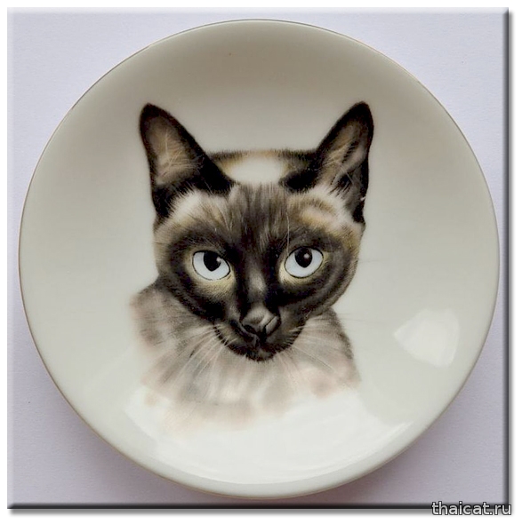 В описании истории сиамских кошек при упоминании культа в 60-х годах XX века часто рассказывается о множестве декоративных тарелок с изображением сиамских кошек. И мне захотелось найти эти тарелочки и посмотреть на них.