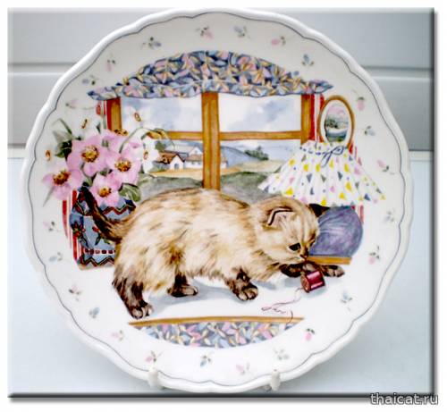Хочу сказать в конце всех этих чудесных фотографий, что, просматривая винтажные тарелочки с кошками, представленные в интернете на март 2016 года, мне не бросилось в глаза засилие сиамских кошек. Я только отобрала винтажные тарелочки по тематике сайта - с сиамскими кошками. Хотя, если судить о том, какая порода кошек изображалась чаще, то, возможно, все-таки именно сиамская.