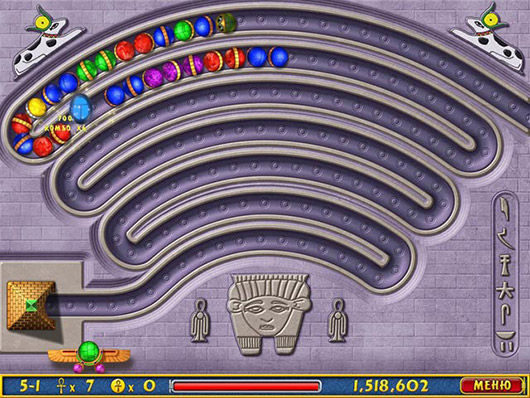 ОПИСАНИЕ ИГРЫ: Первая часть легендарной логической аркады. На игровом поле находится затейливый лабиринт, по которому движется цепочка из разноцветных магических сфер. В вашем распоряжении находится ракетка и обширный запас цветных шариков. Двигайте ракетку по горизонтали и запускайте шарики с таким расчетом, чтобы создать на цепочке группу не менее чем из 3 одинаковых фишек. В случае удачного хода цепочка сократится, а вы заработаете бонусы и очки.