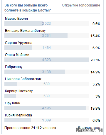 Цитата Julia59F (  ) Олега Майами 1 477 20.2% Если он в финале то все фанаты дом2 ринутся за него голосовать, это будет катастрофа. Не настолько же хочет победить Баста? Я конечно надеюсь что армия дом2 не так велика, но берут сомнения.