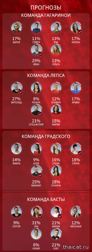 И наконец у Басты призналась только Эра. Кто из четверых(минус Заболоцких он поет 11-го), надеюсь Маша будет 11-го, и если баста решит Мальдивы тащить в финал то он будет с Машей а если захочет слить то с Эрой. Так мне кажется. Третий в принципе не важен, остальные не конкуренты. ИМХО.